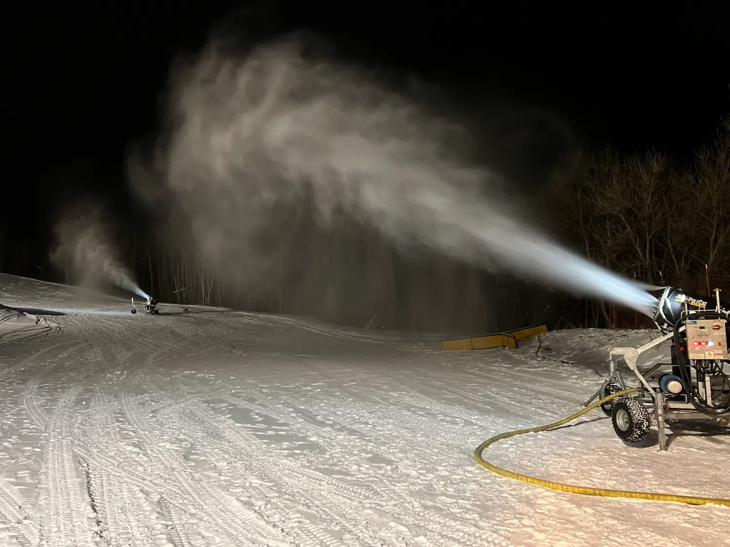 The Kid Polecat is designed for targeted snowmaking in tight spaces. Its compact 7.5 HP fan and 18-nozzle configuration deliver a 100 ft narrower throw, ideal for chairlift loading zones, narrow slopes, beginner areas, and windy spots.